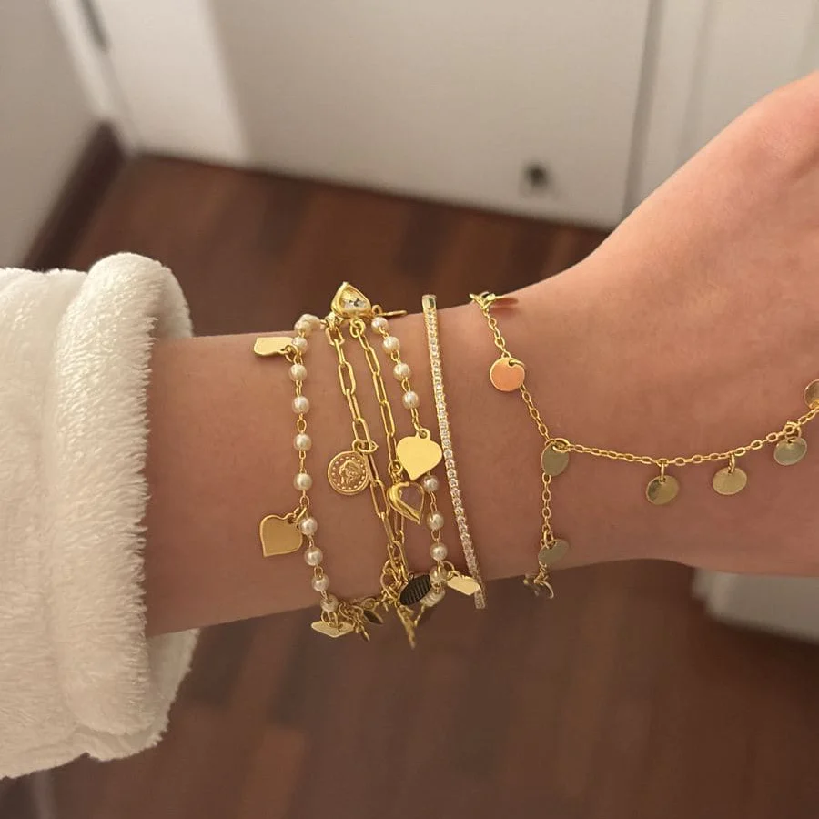 Esta pulseira traz uma corrente de elos alongados adornada com delicados pingentes de moedas, que remetem à tradição e ao charme clássico da joalheria. Uma peça que equilibra modernidade e sofisticação, perfeita para quem deseja ousar no estilo sem abrir mão da delicadeza.